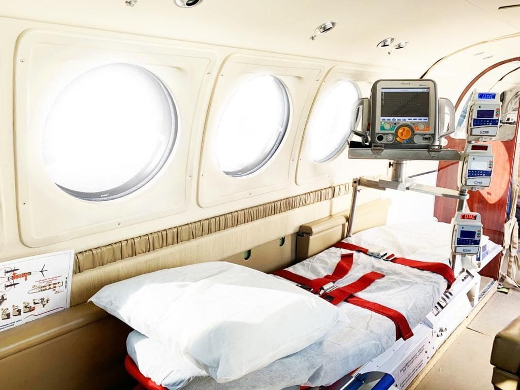 - Monitoramento e cuidados durante o voo: Durante toda a viagem, o paciente recebe suporte avançado, incluindo ventilação mecânica, administração de medicamentos e monitoramento contínuo.